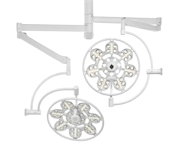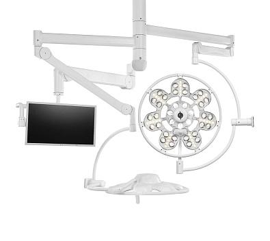 Светильник операционный потолочный «ЭМАЛЕД 500/500» Уровень освещенности: 160\160 кЛк Размер рабочего поля на расстоянии 1 м — от 180 до 350 мм Дополнительная комплектация — Видеокамера (Передача изображения операционного поля на монитор или записывающее устройство с помощью встроенной видеокамеры. Управление всеми функциями с помощью персонального компьютера)— Консоль для монитора Светильник обеспечивает: Регулирование размера рабочего поля и освещенности при сохранении заданной цветовой температуры. Автоматическое переключение на встроенные резервные батареи. Регулирование всех параметров с помощью встроенного и настенного пультов управления Автоматическое переключение на встроенные резервные батареи. Автоматическая зарядка батарей. Возможность использования «эндо» режима и режима увеличения глубины освещения. Возможна поставка бюджетной модели — с 5-кнопочной пленочной клавиатурой на самом светильнике для регулировки уровня светового поля и размера светового пятна (режимы «эндо» и увеличение глубины освещения в этом исполнении не подключаются).
